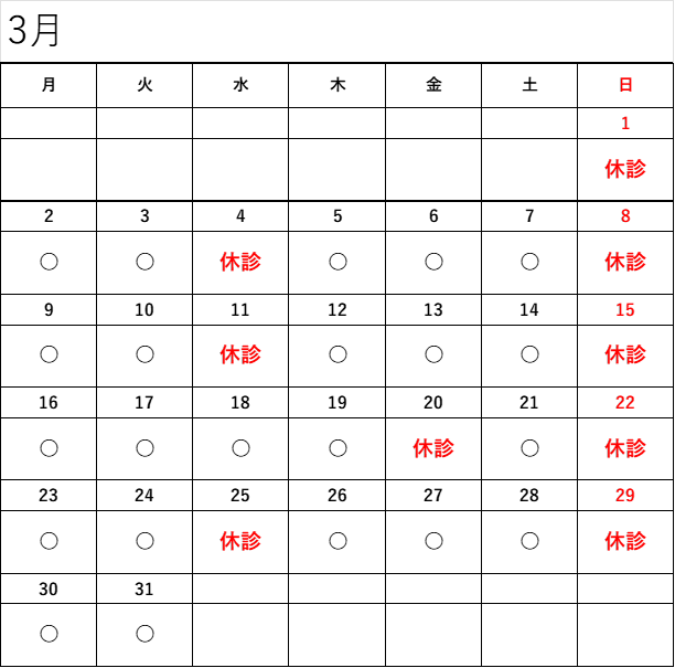 3月の休診日のお知らせ