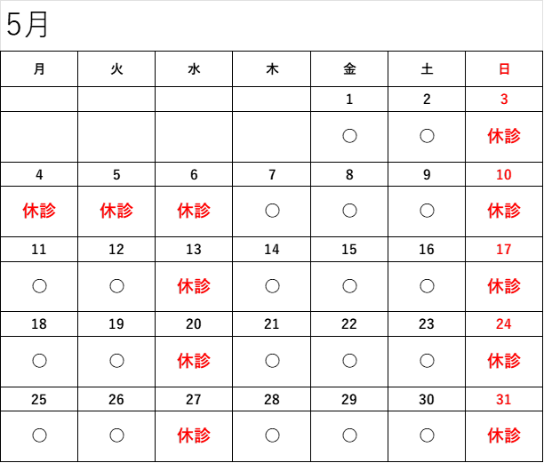 5月の休診日のお知らせ
